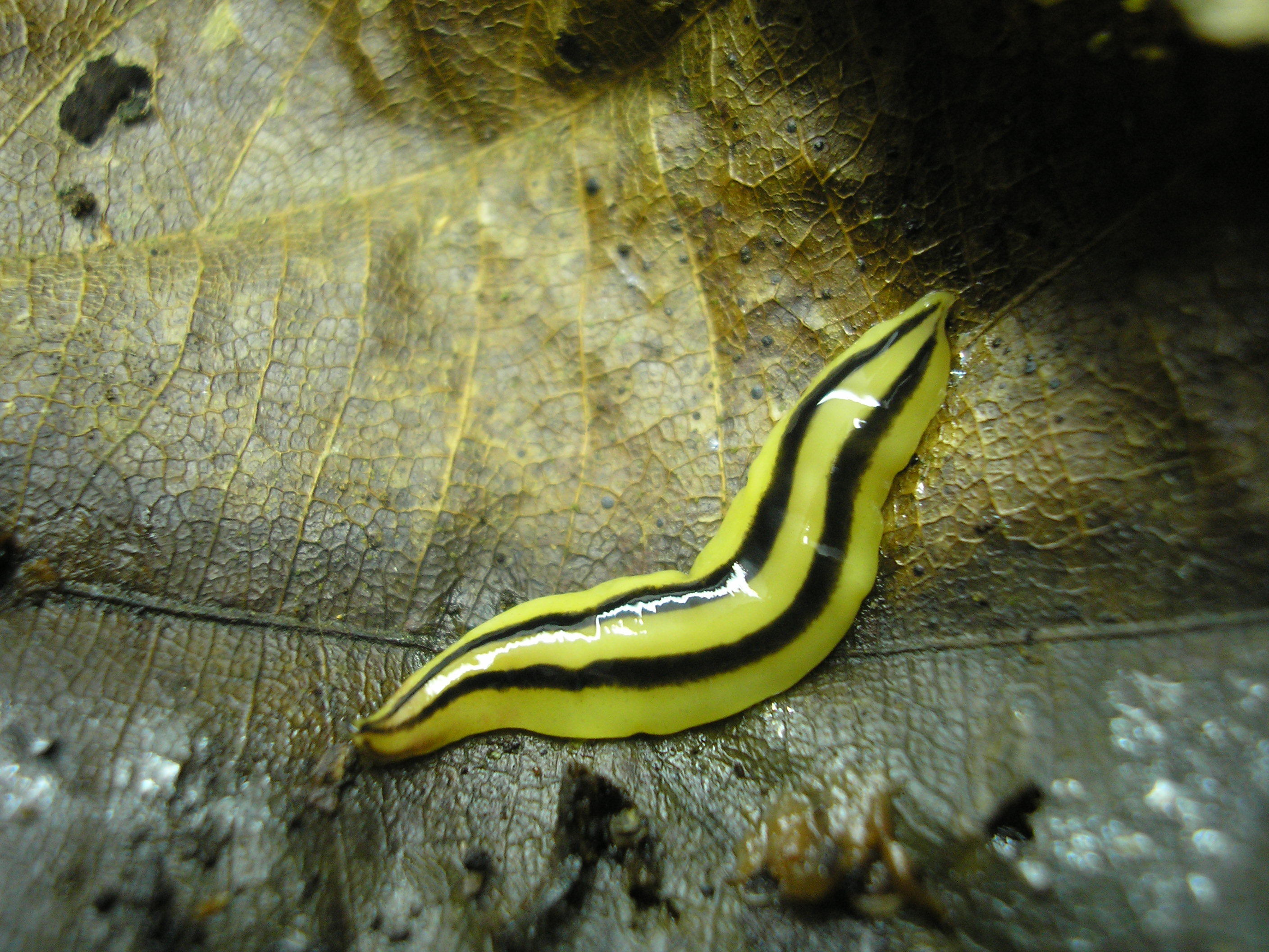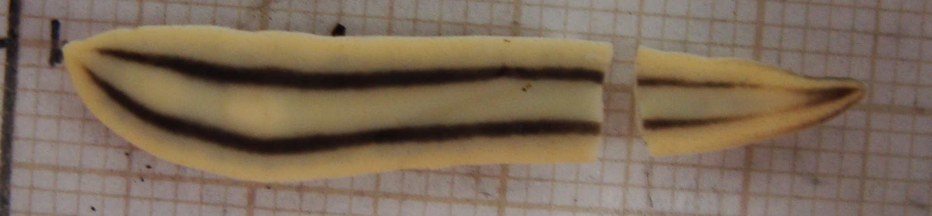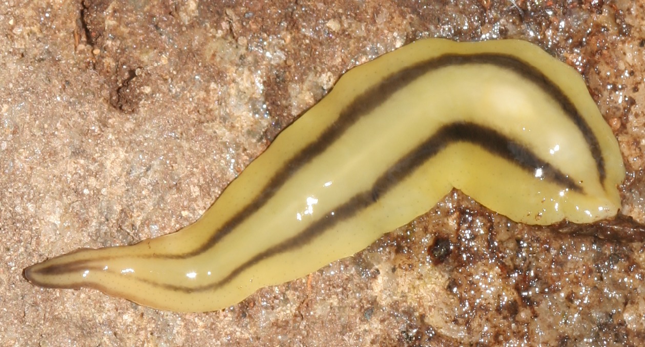 O aspecto externo da espécie é compatível com a descrição, sumária, de Pseudogeoplana theresopolitana Schirch, 1929 Diagnosis. The species is distinguished from its congeners by the following combination of characters: yellow dorsum with two, sometimes four longitudinal dark stripes; cylindrical pharynx, with the dorsal and ventral insertion in the same transverse plane; and an anteriorly-narrowed female atrium.