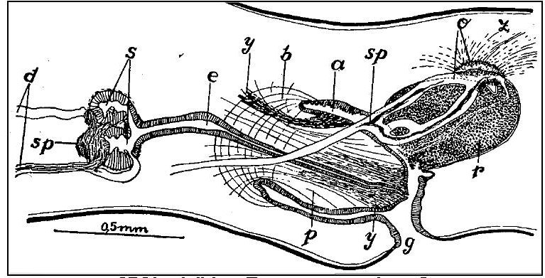 Reconstrução do aparelho copulador de um espécime-tipo (Froehlich, 1958)